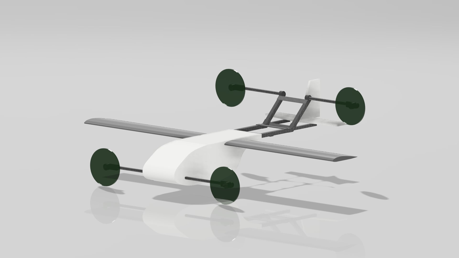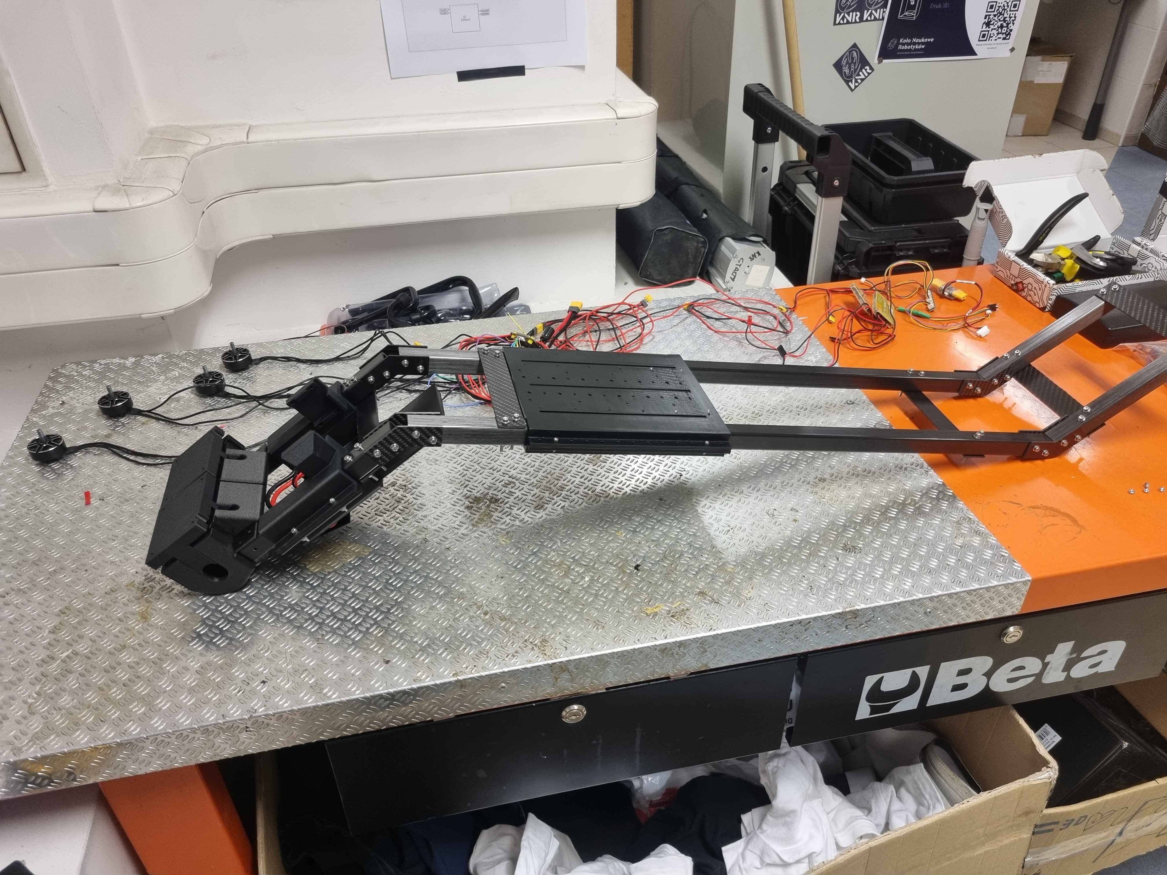 Najnowsza konstrukcja w stajni sekcji. Praca koncepcyjna nad projektem zaczęła się w maju 2025 roku. Jest to konstrukcja typu VTOL tilt-rotor, co oznacza, że dron może latać zarówno w formie quadrokoptera, jak i płatowca. To najbardziej złożony technicznie BSP w naszej sekcji. Łączy on wiele aspektów technicznych, takich jak: aerodynamika, wytrzymałość konstrukcji, analiza drgań, algorytmy wizyjne, sztuczna inteligencja, symulacje robotyczne oraz wykorzystanie zaawansowanych komponentów pokładowych, tj. LiDAR, GPS RTK, komputer pokładowy NVIDIA Jetson oraz kamery fotogrametryczne i wizyjne.