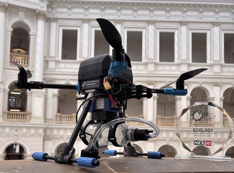Projekt KNR Dron realizowany w Kole Naukowym Robotyków koncentruje się na projektowaniu i budowie bezzałogowych statków powietrznych (BSP) zdolnych do autonomicznego wykonywania złożonych misji. Zespół rozwija zarówno konstrukcję mechaniczną dronów, ich systemy elektroniczne oraz oprogramowanie odpowiedzialne za autonomię oraz przetwarzanie danych. Wiele komponentów powstaje przy wykorzystaniu technologii druku 3D, co umożliwia szybkie prototypowanie i dostosowywanie konstrukcji do wymagań konkretnych misji.